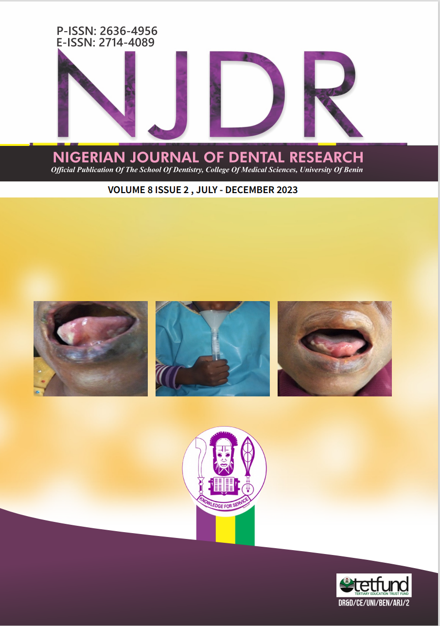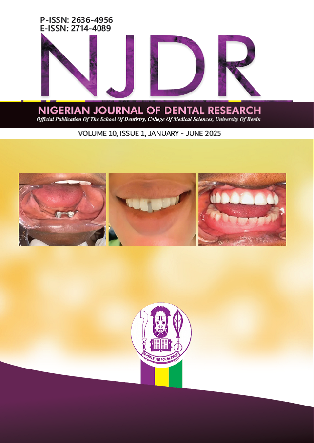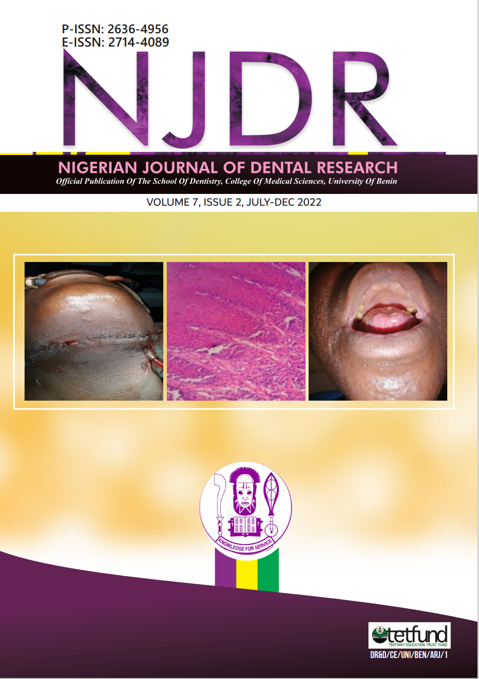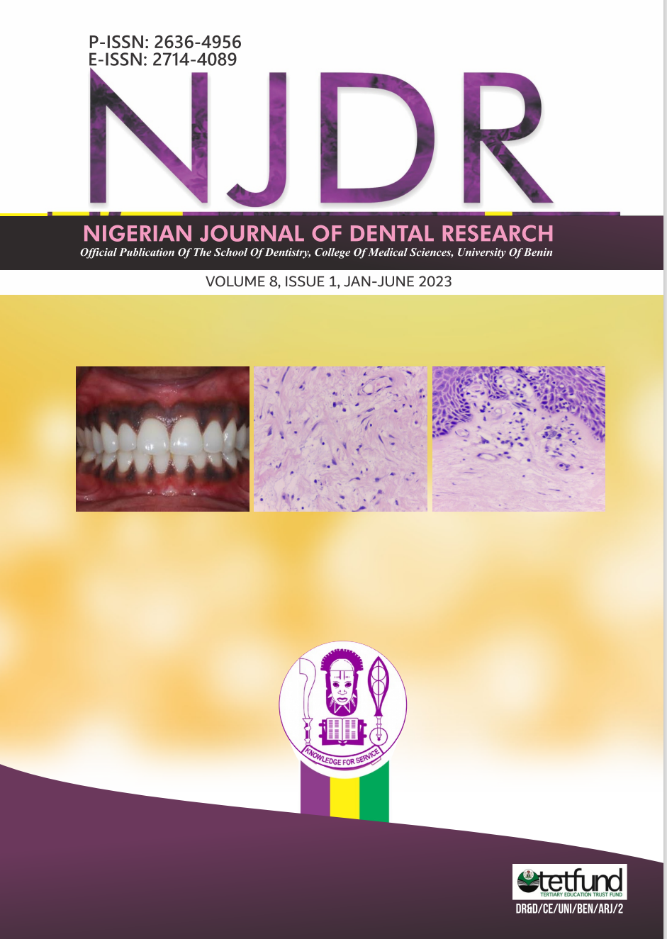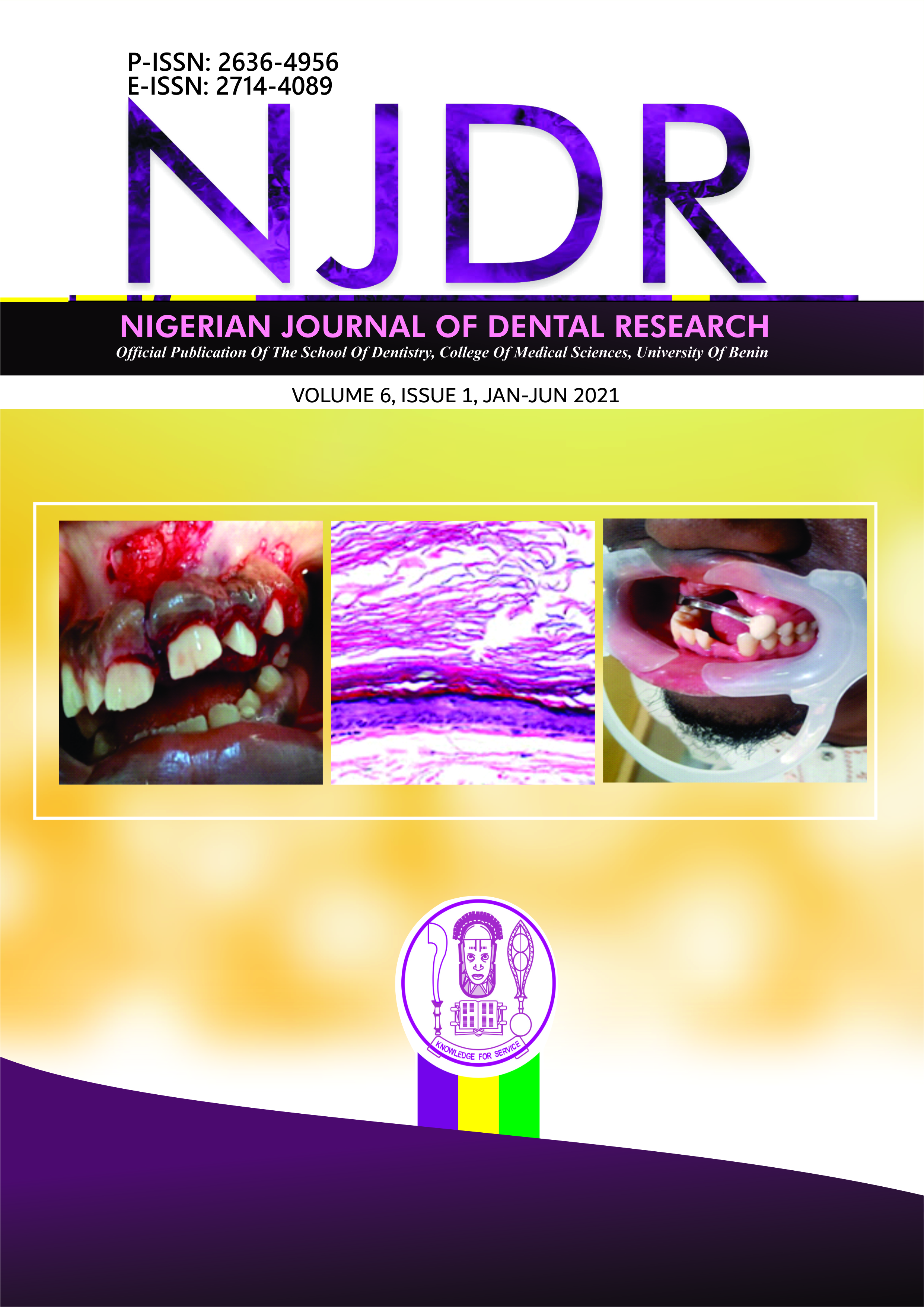 Vol. 1 No. 1 (2016)A Peer-reviewed Journal Publication of the School of Dentistry, University of Benin, Benin-City, Nigeria