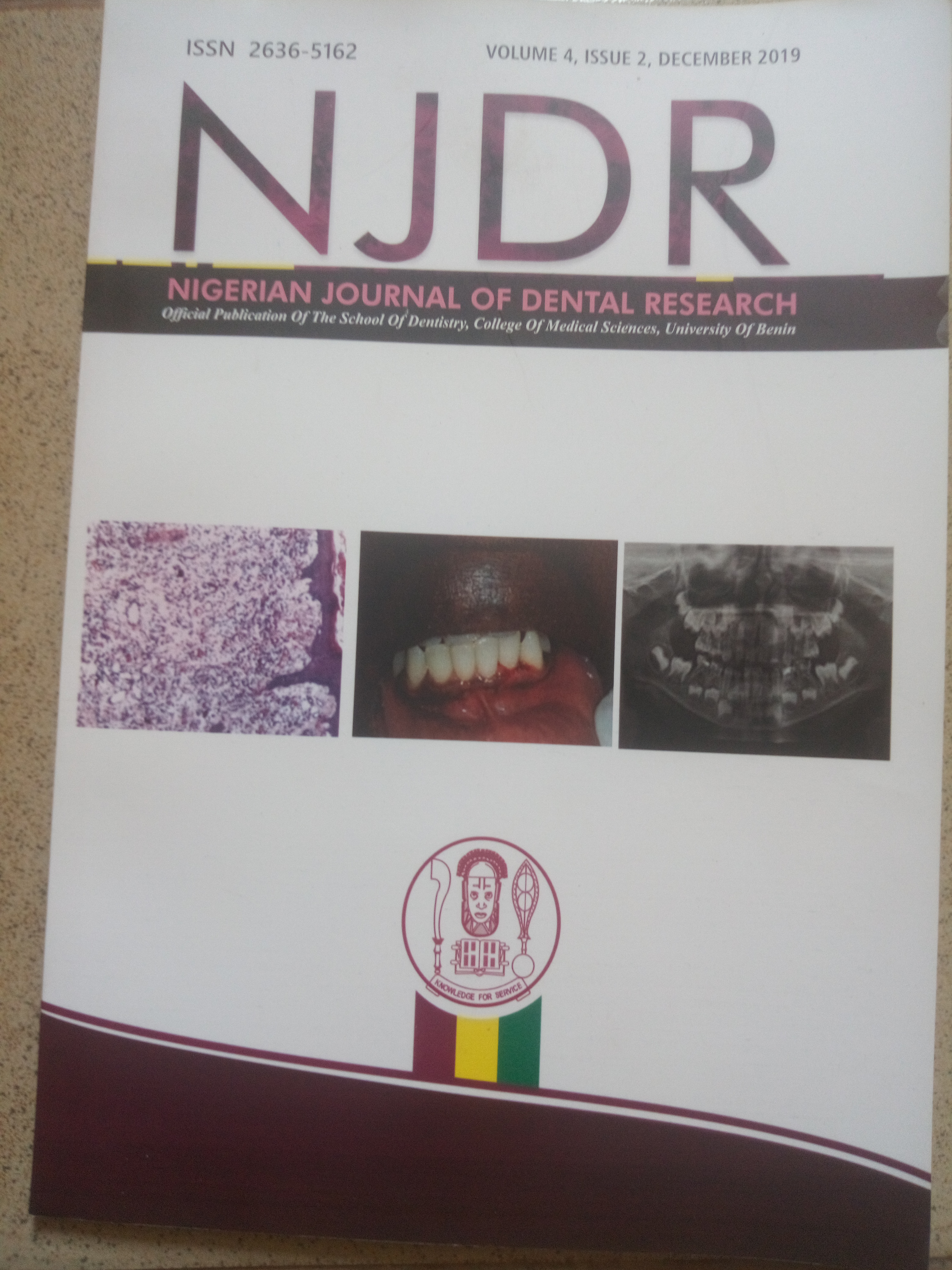 Vol. 2 No. 2 (2017)Nigerian Journal of Dental Research, Volume 2, Issue 2, December, 2017.